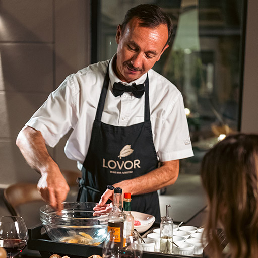 Lovor Wine Bistro jedinstven je obiteljski koncept, stvaran iskustvom, prožet emocijom i oblikovan istinskim vrijednostima, da bi trajao! Otkrijte, osjetite i uživajte u uzbudljivom putovanju bogatim okusima i mirisima inspirirani tradicijskim i novim pričama koje vam nudimo u svakoj čaši i svakom pìjatu.